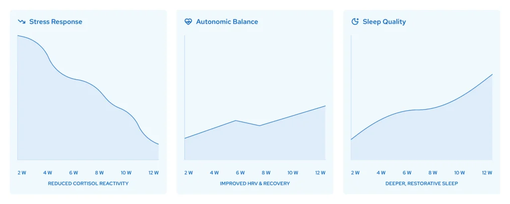 - Chronic stress mode: The ANS fails to switch into deep parasympathetic recovery at night.