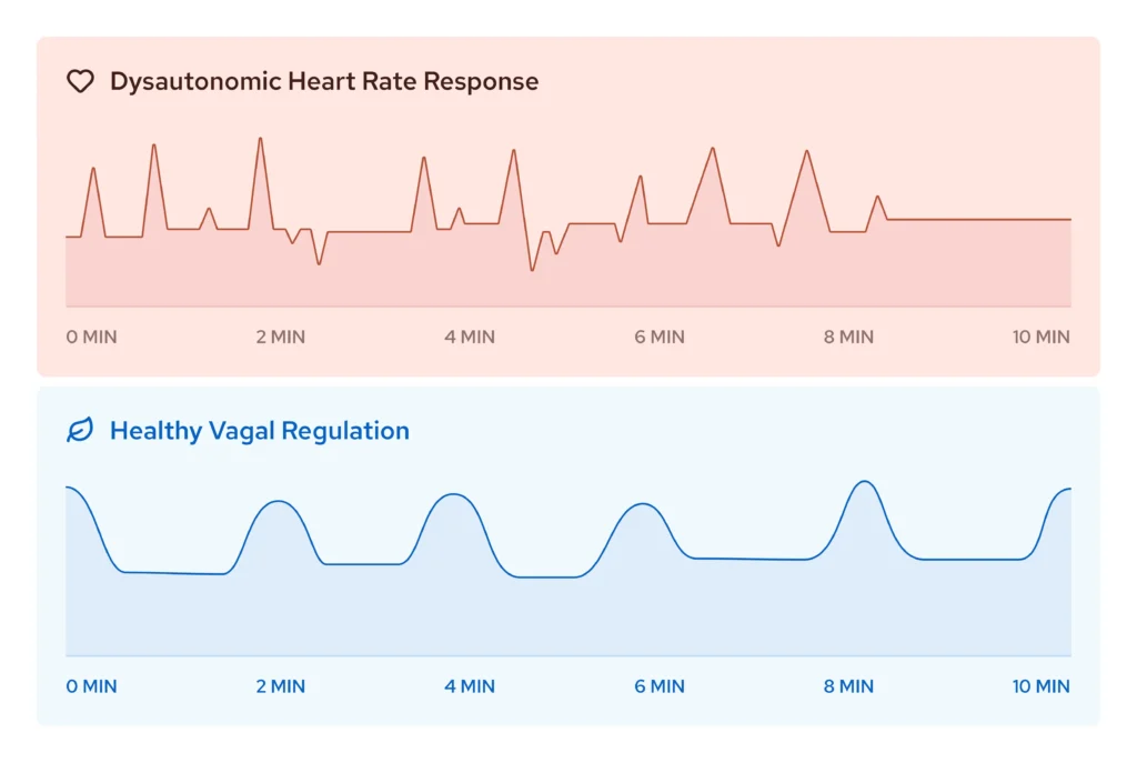 - Autonomic imbalance: Sympathetic “accelerator” gets stuck on, vagal “brake” isn’t working.