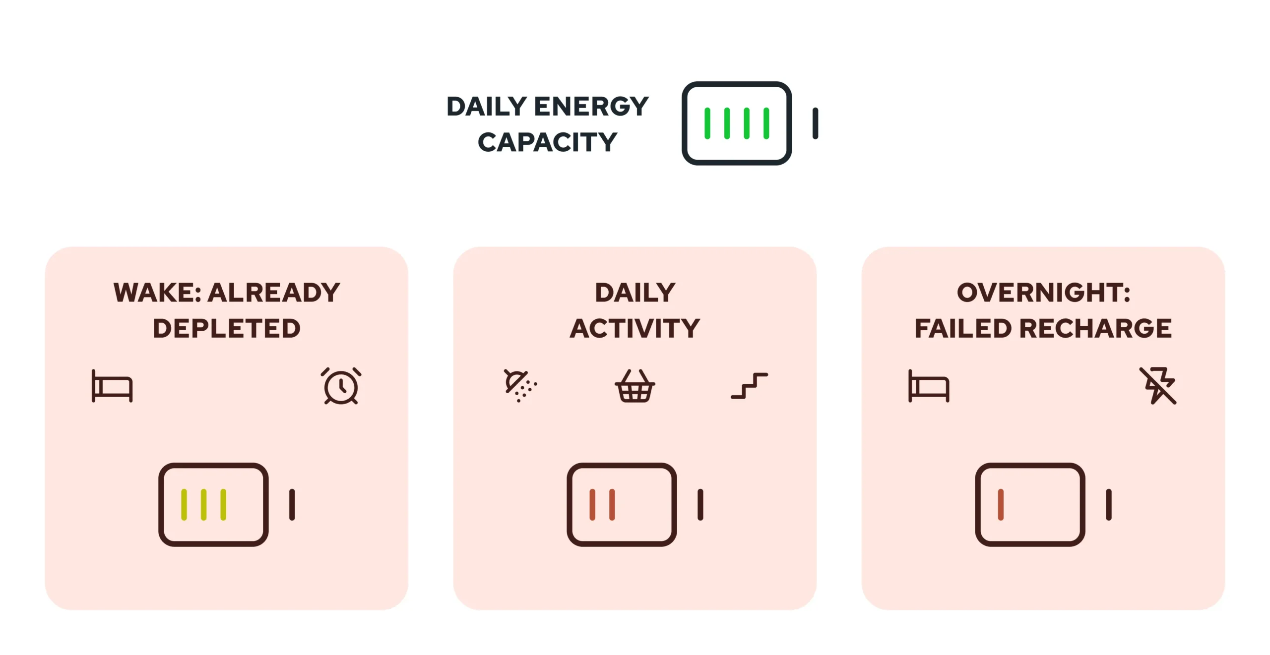 - Sympathetic overdrive: Constant stress signaling drains energy reserves.
