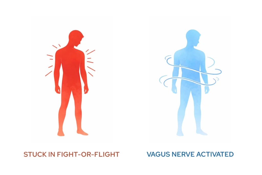 The vagus nerve is your body’s main “calm down” nerve. When you’re chronically anxious, it’s underactive.