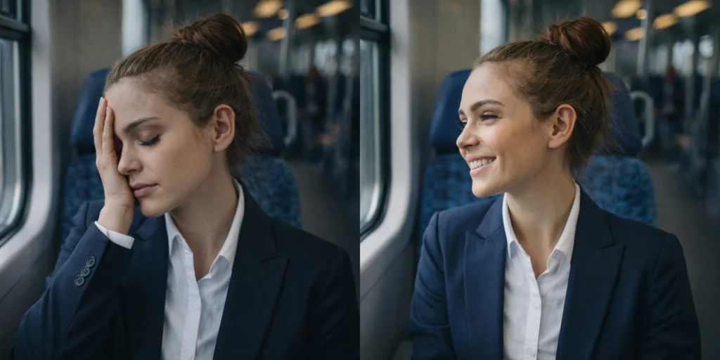 That’s when my anxious thoughts hit hardest: crowded train, someone’s elbow in my ribs, my thoughts racing.